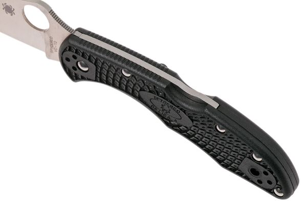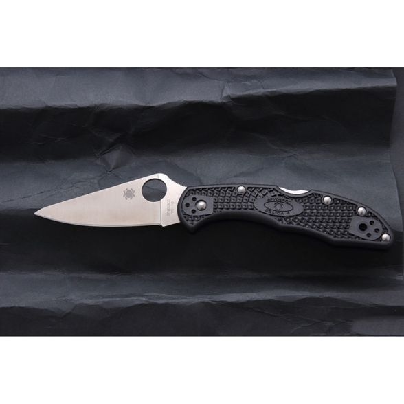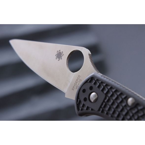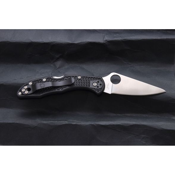 Spyderco Delica 4 –уникальный нож - даже если производитель свернет производство всех других моделей, благодаря Spyderco Delica 4 все равно будет процветать!.Без преувеличения можно сказать, что Delica стала революционным ножом, став первым ножом в истории с возможностью монтажа клипсы на обе стороны. . Клинок формы дроп-пойнт с прямыми спусками от обуха и сведением в 0.4, изготовлен из японской стали VG-10, которая имеет высокую прочность и твердость, прекрасно держит заточку и обеспечивает отличную защиту от коррозии. Прямой скошенный обух, не доходя 4 мм до кончика резко уходит вниз, укрепляя кончик клинка. Клинок имеет спайдерхол диаметром 13 мм, что позволяет комфортно открывать нож даже в перчатке. На горбике над спайдерхолом сделана насечка, образующая удобное место для упора большого пальца. Лезвие имеет довольно большое рикассо, образующее упор для качели замка (для предотвращения повреждения РК) и позволяющее закрывать нож, не опасаясь получить травму. Мягкий ход клинка обеспечивают шайбы из фосфористой бронзы на осевом узле, а самопроизвольное раскручивание осевого винта, кроме фиксатора резьбовых соединений, предотвращает специальная пружинная (изогнутая) стальная шайба. Разборная конструкция рукояти закрытого типа состоит из облегченных стальных лейнеров и накладок из армированного стекловолокном нейлона (FRN). На накладках сделаны насечки Volcano Grip 3 по технологии «bi-directional» - разбегающийся от центра накладки рисунок со скошенными насечками, обращенными к центру, что позволяет отлично контролировать нож, не давая ему выскочить из руки под любым углом. Джипинг на упоре для большого пальца заходит и на спинку рукояти, и отлично фиксирует большой палец на месте.Рукоять эргономична и очень удобна благодаря отличным подпальцевым выемкам и отсутствию острых краев. Замок ножа - Back Lock с выемкой на качели замка Boye dent, позволяющей облегчить «слепое» закрывание и исключить случайное складывание ножа во время работы. Рукоять ножа полностью симметрична и вместе с замком идеально подходят как для левши, так и для правши. Этому помогает и, устанавливаемая, в любое из четырех вариантов, клипса. В любом положении клипса упирается на плоский участок рисунка на накладке, что позволяет легко снимать нож с кармана.