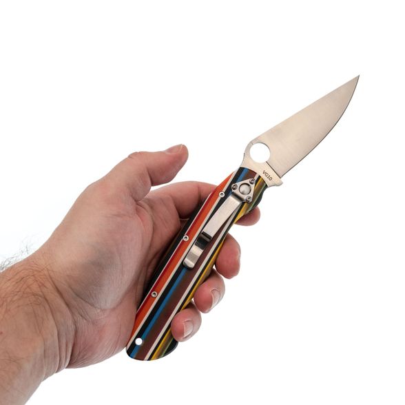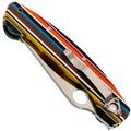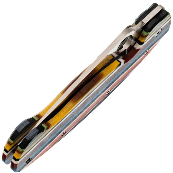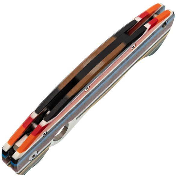 Модель Боец 3 – это крупный складной нож, идеально подходящий для повседневного использования. Он обладает узнаваемым профилем и формами, выверенными до миллиметра. Если вам нужен простой и надёжный нож для ежедневного ношения, то Боец 3 станет отличным выбором. Дополнительно данная модель является ограниченным выпуском – всего 161 штука, что делает её эксклюзивной. Особенность изделия – яркая разноцветная раскраска рукояти в стиле Serape на манер мексиканских накидок, придающая ножу необычный, но красивый внешний вид.