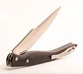 НОЖ СКЛАДНОЙ НАВАХА отсылает нас к историческим прототипа, который были в ходу в средиземноморском регионе. Клинок ножа выполнен из американской инструментальной стали, которая широко используется в тяжелой металлургии для создания режущего инструмента. Сталь отличается жесткой кристаллической структурой и высоким содержанием хрома. Хром отвечает за образование оксидной пленки на поверхности, которая препятствует ржавлению. Соотношение элементов в сплаве подобрано таким образом, чтобы обеспечить высокие рабочие характеристики и хорошую ударную вязкость. Выгнутая рукоятка обеспечивает удобное удержание ножа прямым и обратным хватом. Компактные размеры и небольшой вес позволяют использовать нож для ежедневного использования.