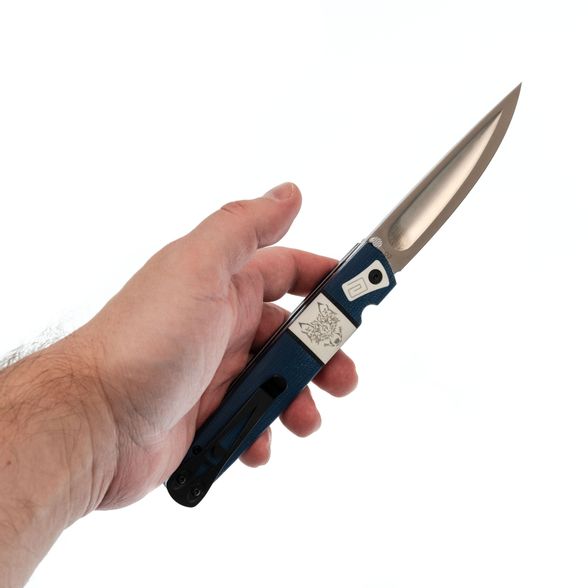 Клинок выполнен из стали D2 – нержавеющей стали высокого класса, известной своей исключительной износостойкостью и коррозионной стойкостью. Это означает, что клинок потребуется точить значительно реже и может использоваться даже во влажных условиях без риска появления ржавчины. Как и в предыдущем варианте, геометрия лезвия включает плоский клинок с долом с одной стороны и выпуклой линзой с другой, что обеспечивает эффективную обработку древесины, замороженного мяса или рыбы. Открытие клинка осуществляется при помощи шпеньки под каждую руку, что гарантирует максимальное удобство использования.