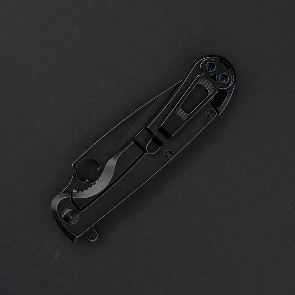 Рукоять ножа также изготовлена из нержавеющей стали, что придает ему солидный вес и делает его очень прочным. Покрытие Black Stonewash на рукояти обеспечивает дополнительную защиту воздействия влаги. Форма разработана с учетом эргономики и подпальцевой выемкой, что обеспечивает безопасность руки. Замок Frame-Lock обеспечивает высокую прочность ножа в рабочем состоянии, что делает его безопасным и готовым к любым испытаниям.
