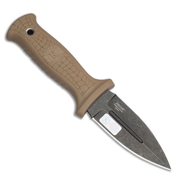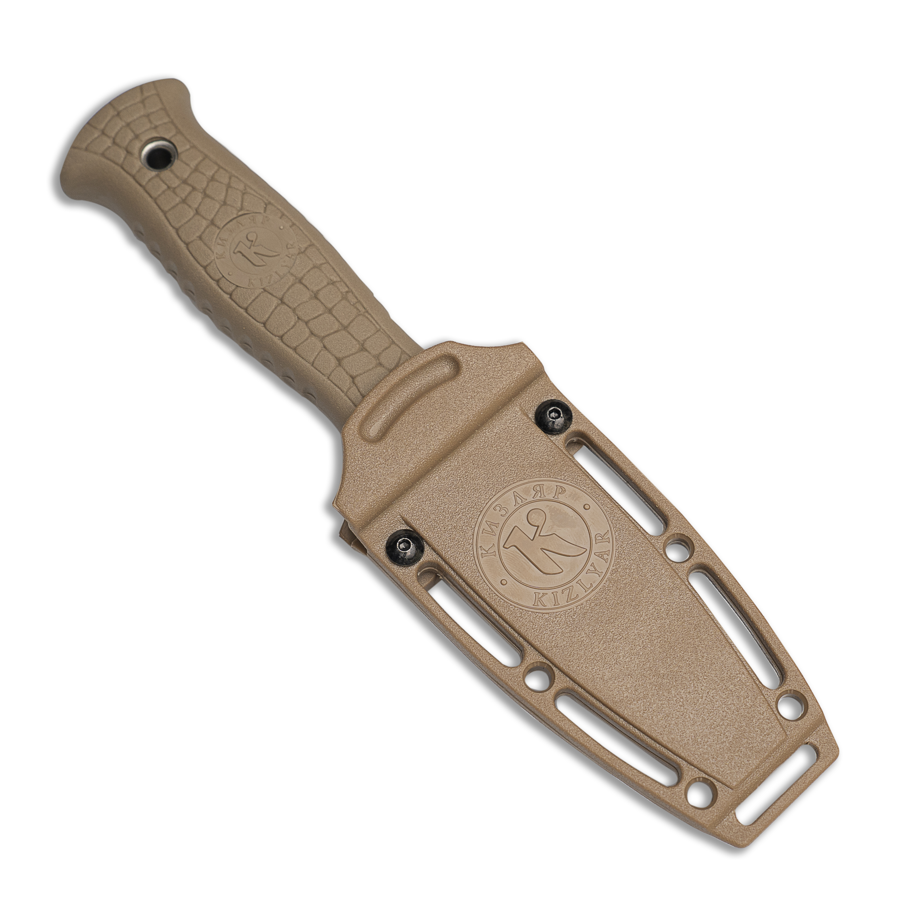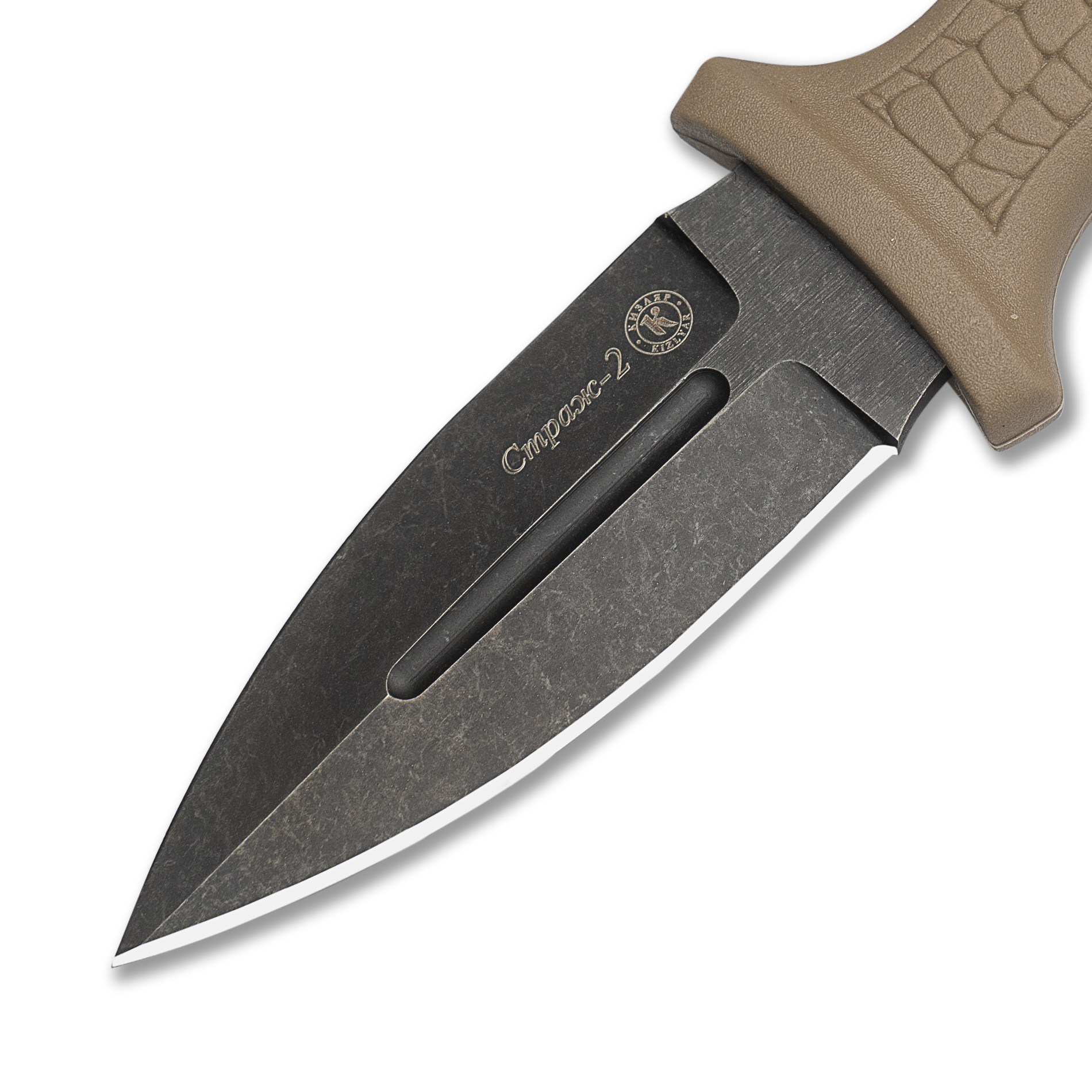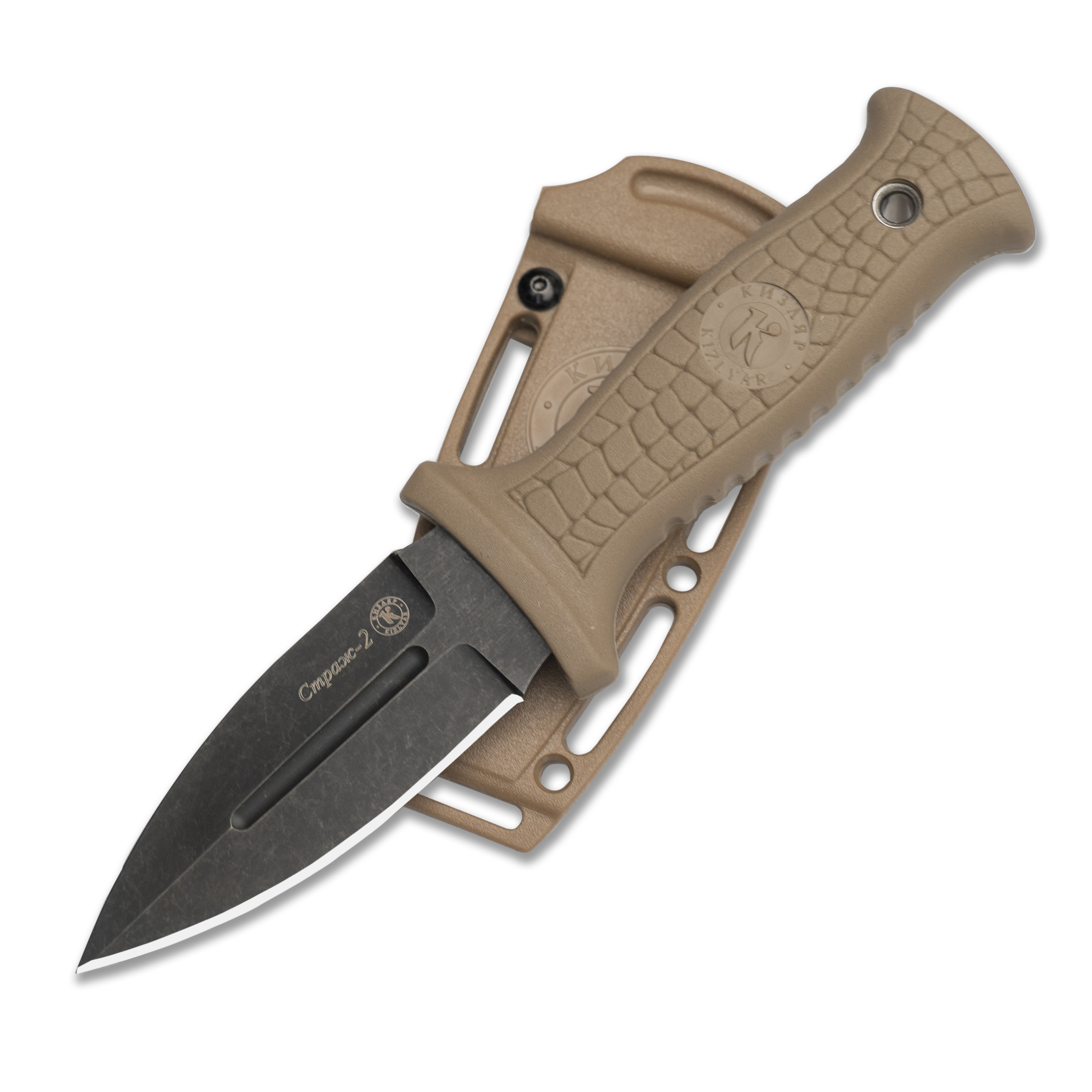 Страж 2 - компактный фикс от Кизляр ПП из тактической линейки: простой, крепкий, без лишних усложнений. Во втором поколении клинок стал симметричным, как у классических кинжальных форм - удобно, когда нужна точность кончиком и уверенный контроль. Версия черно-песочная: песочные рукоять и ножны, на клинке покрытие Black Stonewash.