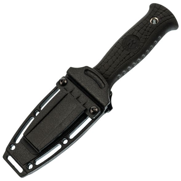 НОЖ СТРАЖ, СТАЛЬ AUS-8, КИЗЛЯР это городской тактический фиксед для тех «кто понимает». Несмотря на свои компактные размеры перед нами полноценный тактический нож, который может использоваться не только для самозащиты в экстремальной ситуации, но и вполне способен выполнить любую бытовую задачу. Так, с помощью волнообразной заточки на обухе можно разрезать ремень безопасности или садовый шланг. Для повышения надежности клинок имеет мощное ребро жесткости. Удобная рукоятка из эластрона оснащена двухсторонним упором, что обеспечивает дополнительную защиту от соскальзывания пальцев на клинок в процессе работы. Для транспортировки и хранения используются ножны со съемной клипсой.