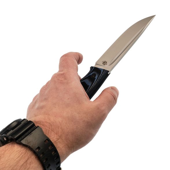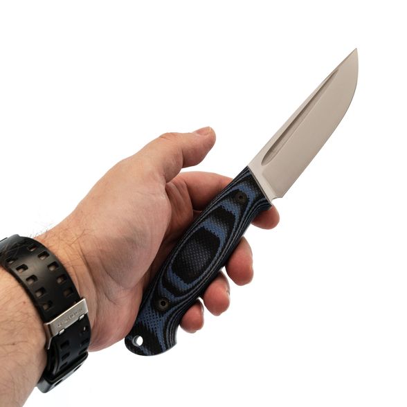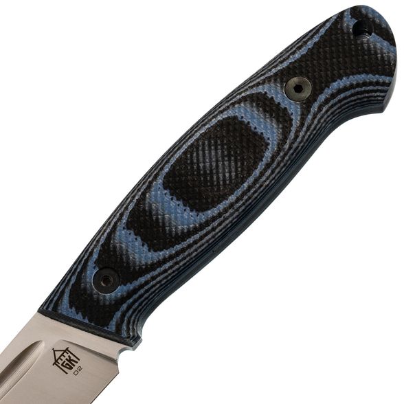 Рукоять ножа изготовлена из стеклотекстолита G10 с небольшим изгибом и нейтральной формой, обеспечивая комфортное и надежное удержание как в маленьких, так и в больших руках. Этот материал гарантирует высокую прочность и стабильность, идеально подходя для длительного использования в самых различных условиях.