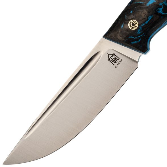 Клинок изготовлен из эксклюзивной порошковой стали Elmax, которая славится своим долгим удержанием заточки, агрессивным резом и превосходным сопротивлением коррозии. Содержание вредных примесей в составе минимально, что делает эту сталь идеальным выбором для ножей, часто работающих с продуктами. Прямые высокие спуски, тонкое сведение и не слишком толстый обух обеспечивают невероятное качество реза и его плавность. Дол придает ножу ребро жесткости и делает внешний вид еще более брутальным. Универсальная форма Drop-Point подходит как для разделки туши, так и для повседневных задач, таких как нарезание продуктов или строгание.
