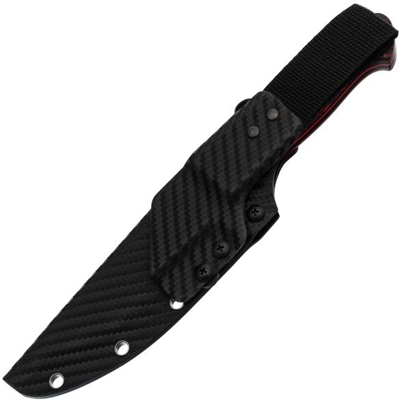 Ножны, выполненные из кайдекса, дополнены стильной карбоновой наклейкой, что придает им изысканности. Они надежно фиксируют нож, обеспечивая безопасность и быстрый доступ. Прочный подвес на ремень и дополнительные люверсы позволяют выбрать наиболее удобный способ ношения. Эти ножны — не просто защита для вашего ножа, но и стильный аксессуар, подчеркивающий вашу индивидуальность.