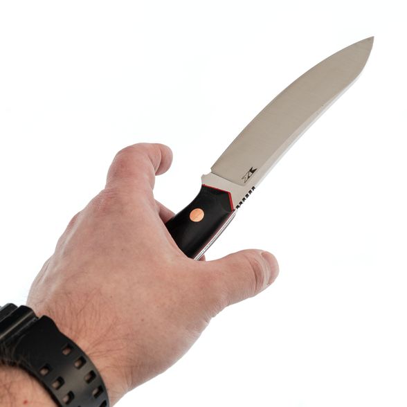Клинок из высокоуглеродистой стали D2 - оптимальный выбор ввиду высокой эффективности и долговечности, обеспечивая долговременное сохранение заточки даже при интенсивном использовании. Высокие прямые спуски дают ножу феноменальный рез, при этом оставаясь достаточно прочными.