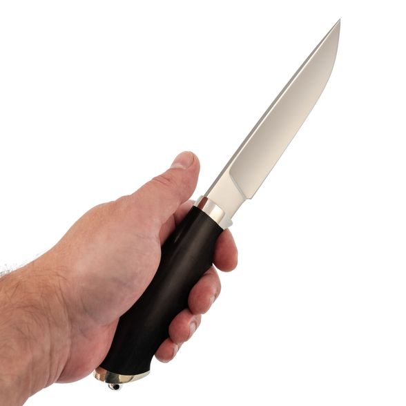 Имеющий классический черный цвет и сдержанный, но элегантный дизайн, этот нож неизменно притягивает взгляды. Рукоять из высококачественного граба обеспечивает уверенное и комфортное ухватывание, уменьшая риск скольжения в мокрую погоду и при этом приятно ощущается на осязание, укрепляя единение с природой.