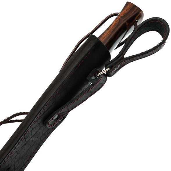 Ножны для Тигра-2 выполнены из толстой натуральной кожи, что делает их долговечными и практичными. Они снабжены как свободным, так и жёстким подвесом, что позволяет выбрать наиболее подходящий способ ношения. Погружная конструкция надёжно удерживает нож внутри, обеспечивая его защиту и одновременно быстрый доступ к нему. При должном уходе кожаные ножны сохранят свои свойства и внешний вид на протяжении долгих лет эксплуатации.