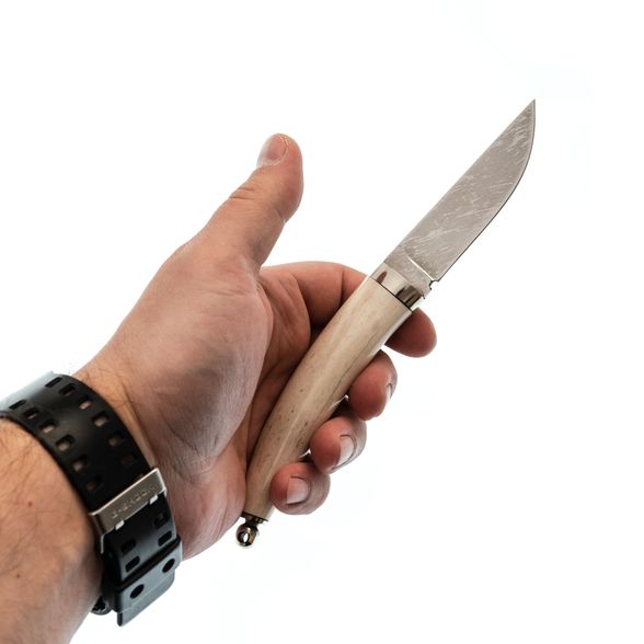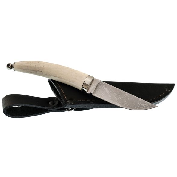 Нож Тигр, сталь Х12МФ, малый, рукоять Рог лося, литьё - дюраль, мельхиор, ручная работа .