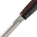Клинок изготовлен из стали D2, прошедшей криогенную обработку, что обеспечивает его высокую прочность и долговечность. Твердость стали составляет 61-62 HRC, что гарантирует длительное удержание остроты. Такой клинок не потребует заточки в течение длительного времени, даже при интенсивном использовании. Геометрия Drop-Point с высокими прямыми спусками позволяет эффективно выполнять различные задачи: от разделки туши до строгания дерева. Толщина клинка 3,5 мм обеспечивает необходимую прочность для самых разнообразных работ.