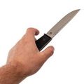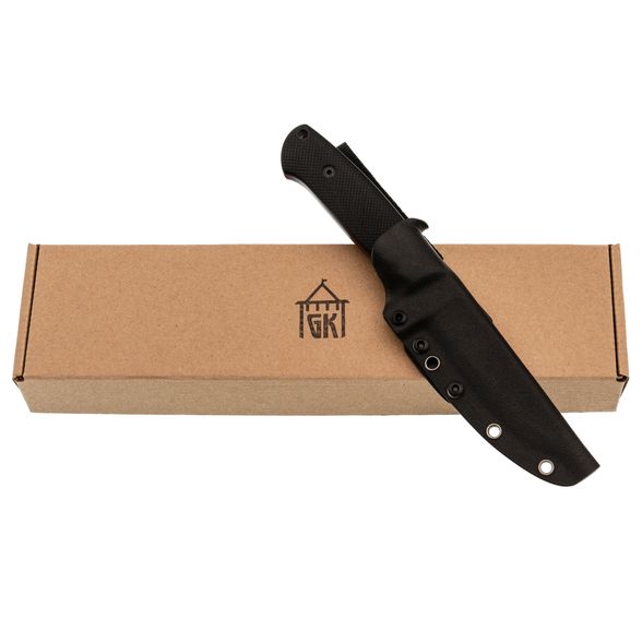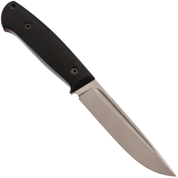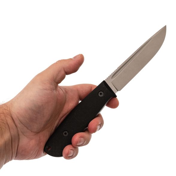 Рукоять изготовлена из стеклотекстолита G10 - это прочный и устойчивый к окружающей среде материал, который часто используется для изготовления рукоятей и других деталей, требующих высокой прочности и устойчивости. Оружейная насечка на рукояти обеспечивает надежный и комфортный хват даже в сложных условиях. Монтаж рукояти выполнен по технологии скрытого Full-Tang, что означает, что хвостовик полный, но при этом скрыт внутри рукояти, обеспечивая ее целостность и монолитность.