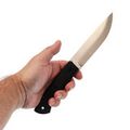 Тигр от Кузницы Сёмина задуман как универсал: едет в рюкзаке, спокойно делает лагерь, чистит рыбу, строгает колышки и помогает на кухне. Главный фокус - стабильная работа в походе без сюрпризов: геометрия дружелюбна к продуктам и дереву, а эргономика не заставляет перехватывать хват каждые пять минут.