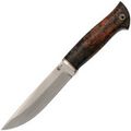 Клинок ножа выполнен из стали PGK — высокоуглеродистой инструментальной стали, которая обладает высокой прочностью, твердостью и хорошими свойствами по удержанию остроты. За счет спусков от середины клинка нож имеет отличный запас прочности, что делает его надежным при решении сложных задач. Универсальная форма Drop-Point идеально подходит для выполнения самых разнообразных операций, включая резку, строгание и другие работы.