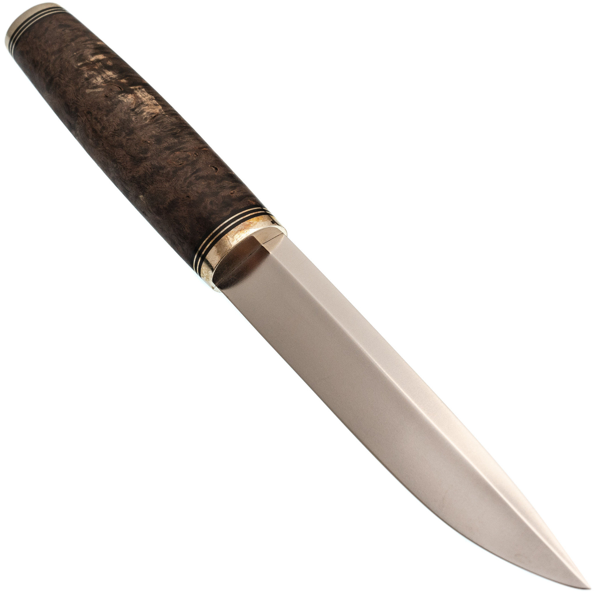 Том - современная интерпретация финских томми от мастерской Ульданова: северная школа простоты и практичности, перенесённая в туризм и повседневный выезд на природу. Модель задумана как надёжный напарник у костра и на тропе: помогает с лагерем, готовкой, мелкой подгонкой снаряжения и древесины, не требует сложных привычек и ведёт себя предсказуемо в разных хватах и задачах.