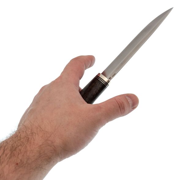 Нож Том создан мастерской Ульданова, расположенной в городе Ворсма, Нижегородская область - известном центре традиционного ножевого ремесла. Это высококачественный туристический нож средних размеров, вдохновлённый формой классической финки Томми. Его отличает узнаваемая конструкция: прямая, слегка бочковатая рукоять и клинок с ромбовидным сечением. Нож идеально сбалансирован для практических задач на природе - будь то рыбалка, охота или туристический быт. Высокая утилитарность сочетается с премиальным качеством исполнения, что делает его не просто рабочим инструментом, а надёжным спутником в любой вылазке.