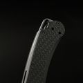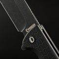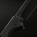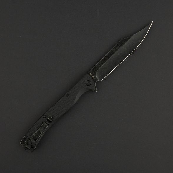 Клинок имеет характерную утрированную форму clip-point - удлинённый, с выраженным изгибом и тонким кончиком. Такое решение обеспечивает не только эстетическую выразительность, но и отличную функциональность при точных работах. Высокие вогнутые спуски дают тонкое сведение, улучшают рез и снижают усилия при резке плотных материалов. Благодаря подшипниковой системе и флипперу, клинок открывается одним движением - быстро, легко и стабильно.