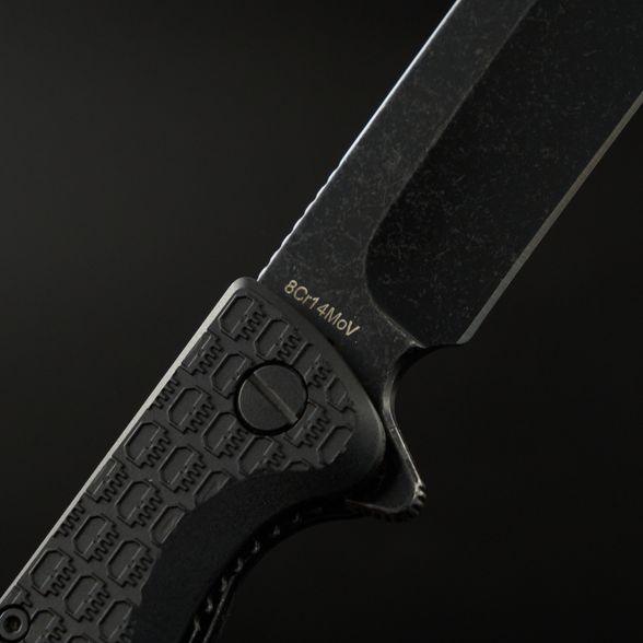 Клинок из стали 8Cr14MoV. Эта нержавеющая сталь обладает хорошими показателями износостойкости, устойчива к влаге, не склонна к сколам и быстро возвращается в строй при заточке. Это делает её особенно удобной в повседневной эксплуатации.