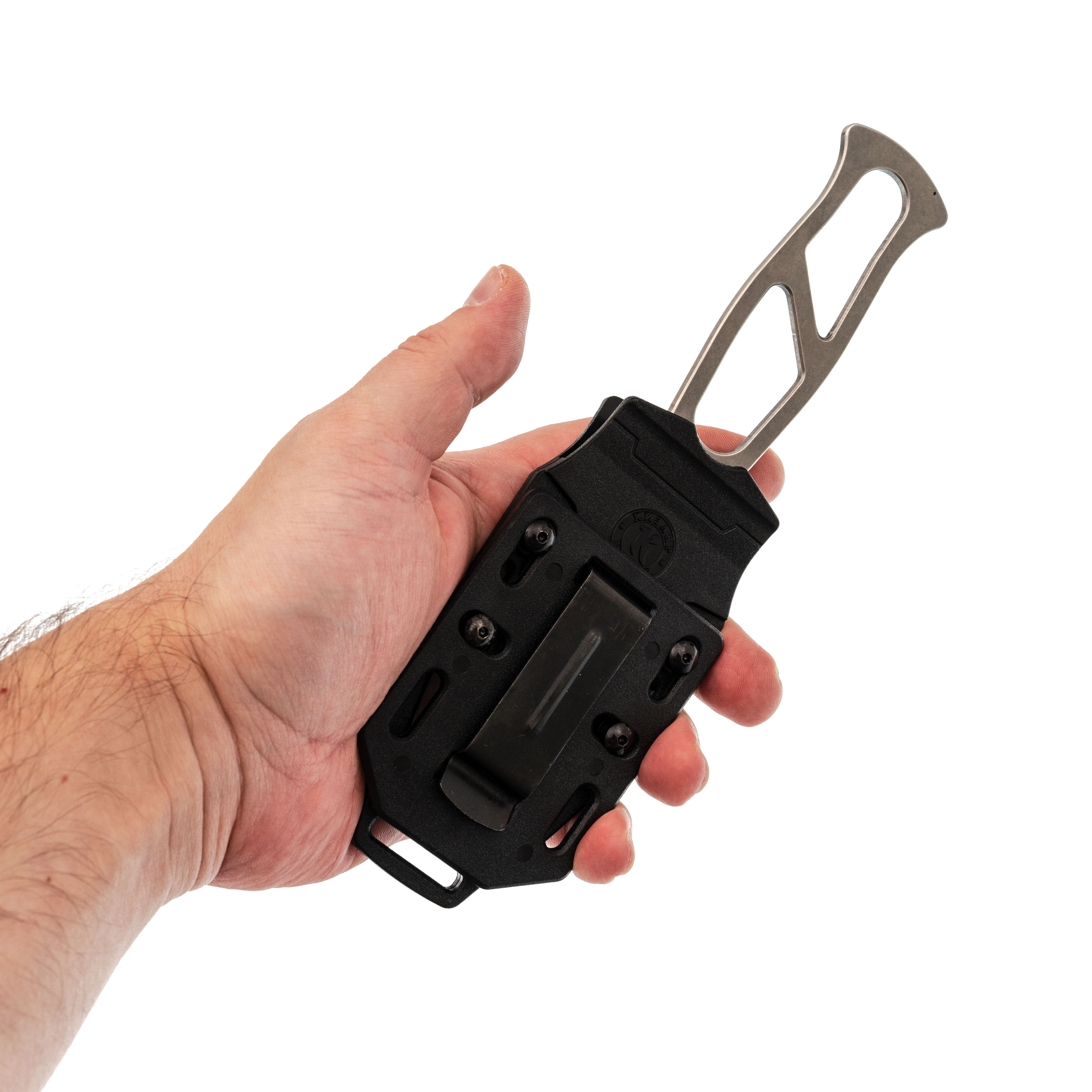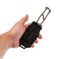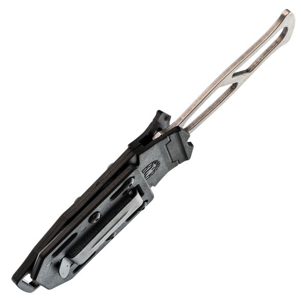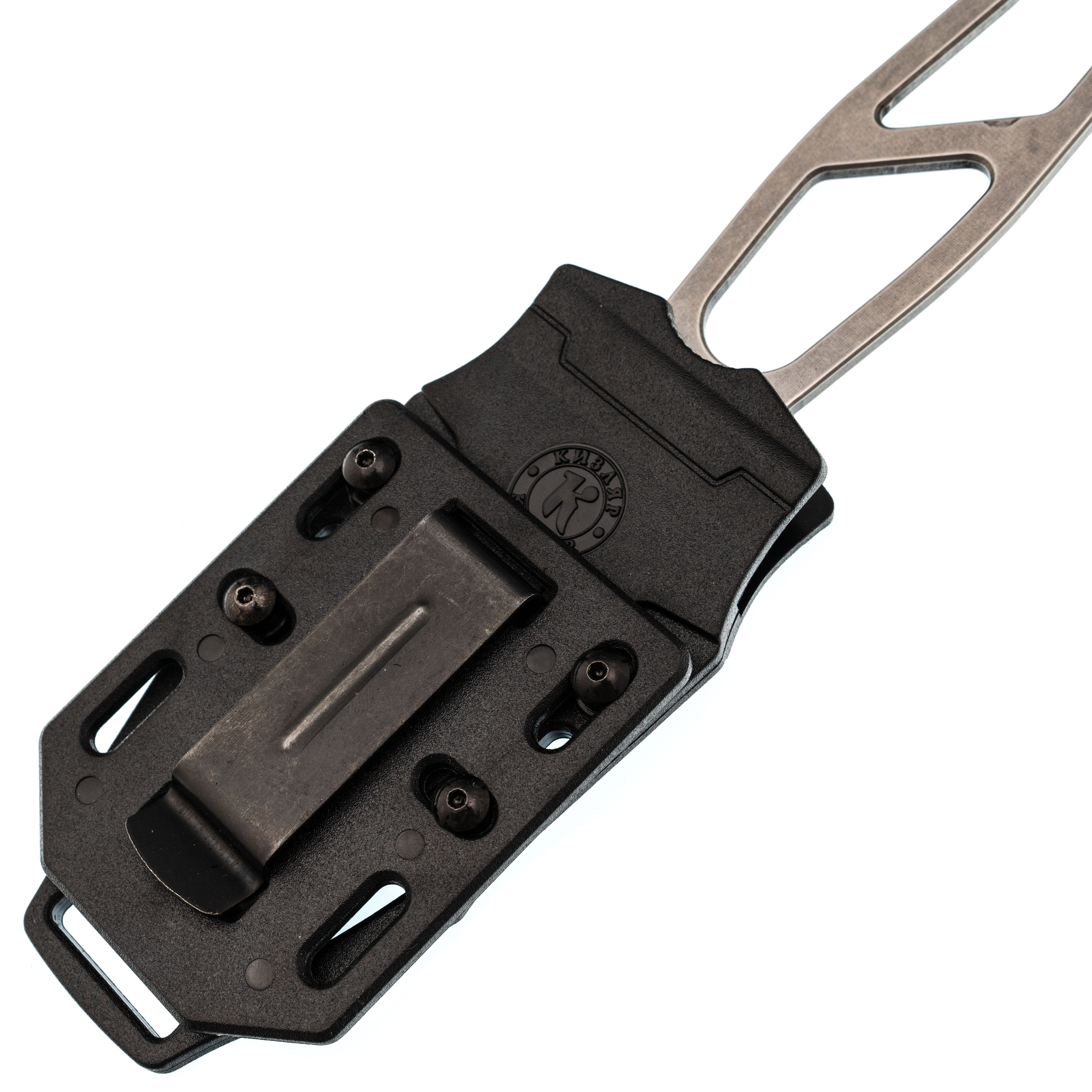 Пластиковые ножны надёжно фиксируют клинок с характерным щелчком, так что нож уверенно сидит на месте и не болтается. Клипса позволяет носить "Триумф" на ремне как горизонтально, так и вертикально, а люверсы и прорези по краям дают простор для фантазии: можно закрепить нож на стропах рюкзака, подвесе или другой экипировке так, как удобно именно вам.