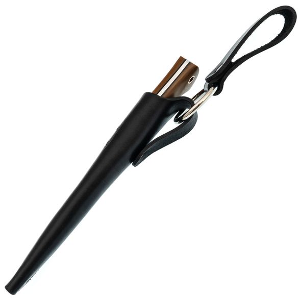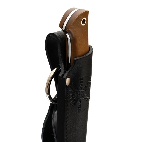 Клык комплектуется погружными ножнами из натуральной кожи, с возможностью как свободного так и жесткого подвеса.