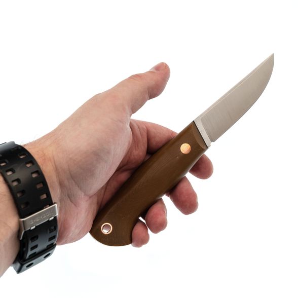 Нож Клык Малый представляет собой компактную модель ножа Клык. Несмотря на свои более скромные размеры, он сохраняет функциональность оригинала, обеспечивая при этом такой же уровень комфорта в использовании.