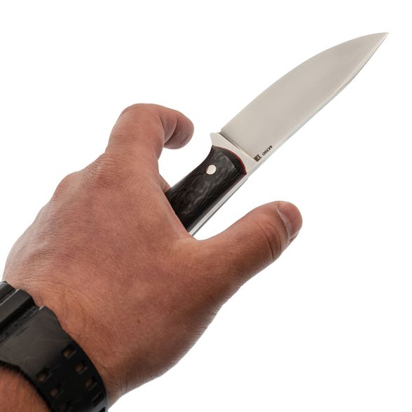 Нож с клинком из премиальной порошковой стали M390 - это идеальный выбор для тех, кто ценит качество и надежность. Эта сталь обладает высокой устойчивостью к коррозии, долго держит заточку и имеет агрессивный рез. Прямые спуски от обуха позволяют использовать нож для различных задач, а его универсальная форма делает его достойным выбором для основного туристического ножа.