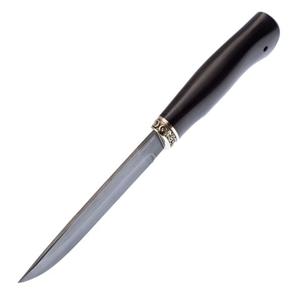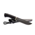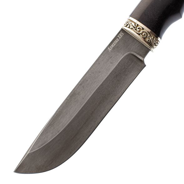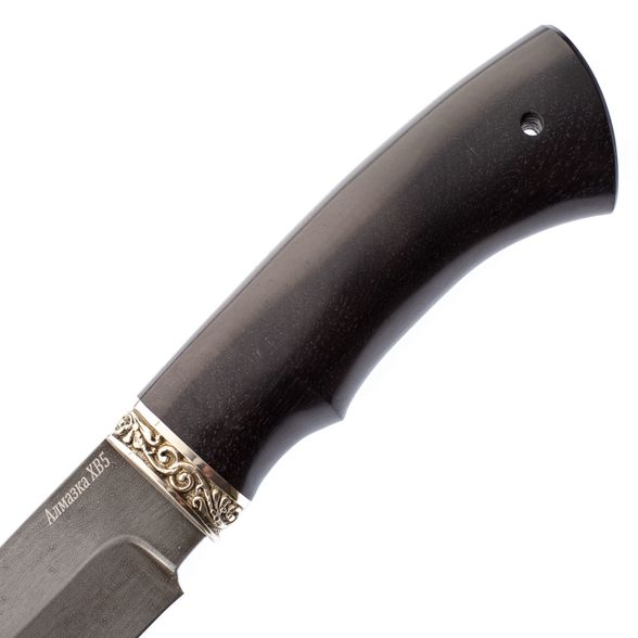Рукоять ножа выполнена из стабилизированной древесины. Этот материал проверен не одним поколением охотников и туристов. Главной особенность рукоятей из дерева является то, что опытные люди называют «теплотой». Такую рукоятку можно уверенно удерживать на морозе голой рукой и при этом совершенно не испытывать холода.