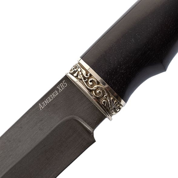 Клинок ножа выполнен из алмазной стали ХВ5, которая имеет твердость 63-64HRC. Благодаря этому туристический всадной нож выдерживает огромные нагрузки на излом и скручивание. Такие свойства делают его отличным претендентом на роль всепогодного полевого ножа.