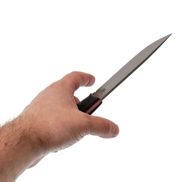 Форма рукояти тщательно продумана: она отлично ложится в ладонь, обеспечивая надёжный и удобный хват. Даже во влажных условиях нож остаётся послушным и не выскальзывает из руки, что особенно важно при продолжительной работе.