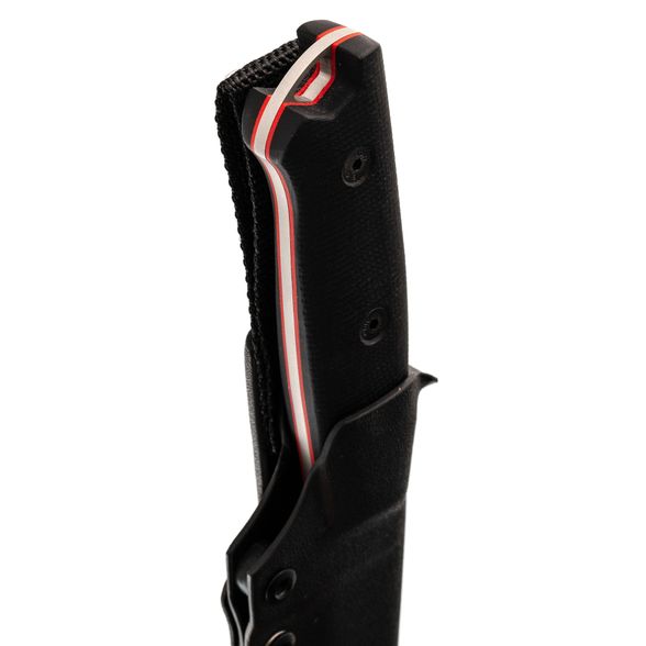 Рукоять выполнена из G10 — композитного стеклотекстолита, широко применяемого в тактическом и полевом снаряжении. Этот материал не боится влаги, выдерживает температурные перепады и механические нагрузки. Он не впитывает грязь и легко очищается после использования.