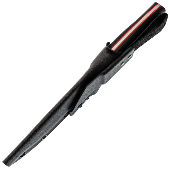 Для удобства транспортировки и защиты лезвия нож комплектуется ножнами из Kydex. Этот термопластик известен своей стойкостью к истиранию, влаге и перепадам температур. Ножны надёжно удерживают нож, фиксируя его даже при активном передвижении.