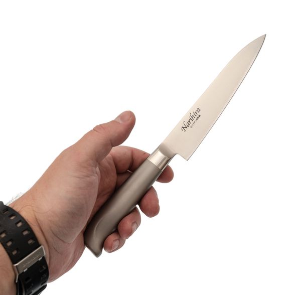 Кухонный нож универсальный Tojiro Fuji Cutlery Narihira FC-60, сталь Mo-V, рукоять нержавеющая сталь, серебристый