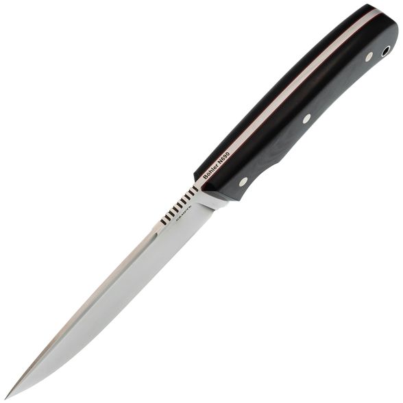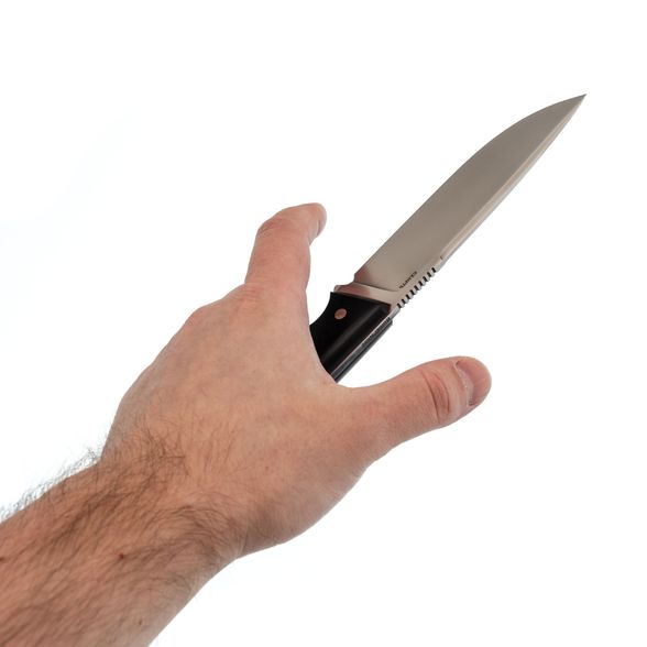 Клинок выполнен из высококачественной австрийской стали N690 - одного из лучших сплавов в своём классе. Этот материал известен своей стойкостью к коррозии, твёрдостью, способностью долго удерживать заточку и при этом - отличной ремонтопригодностью. Но особенно важно, что кузница Кметь применяет собственную запатентованную технологию термообработки, которая признана одной из лучших не только в России, но и на международной арене. Это обеспечивает клинку максимальное раскрытие потенциала стали.