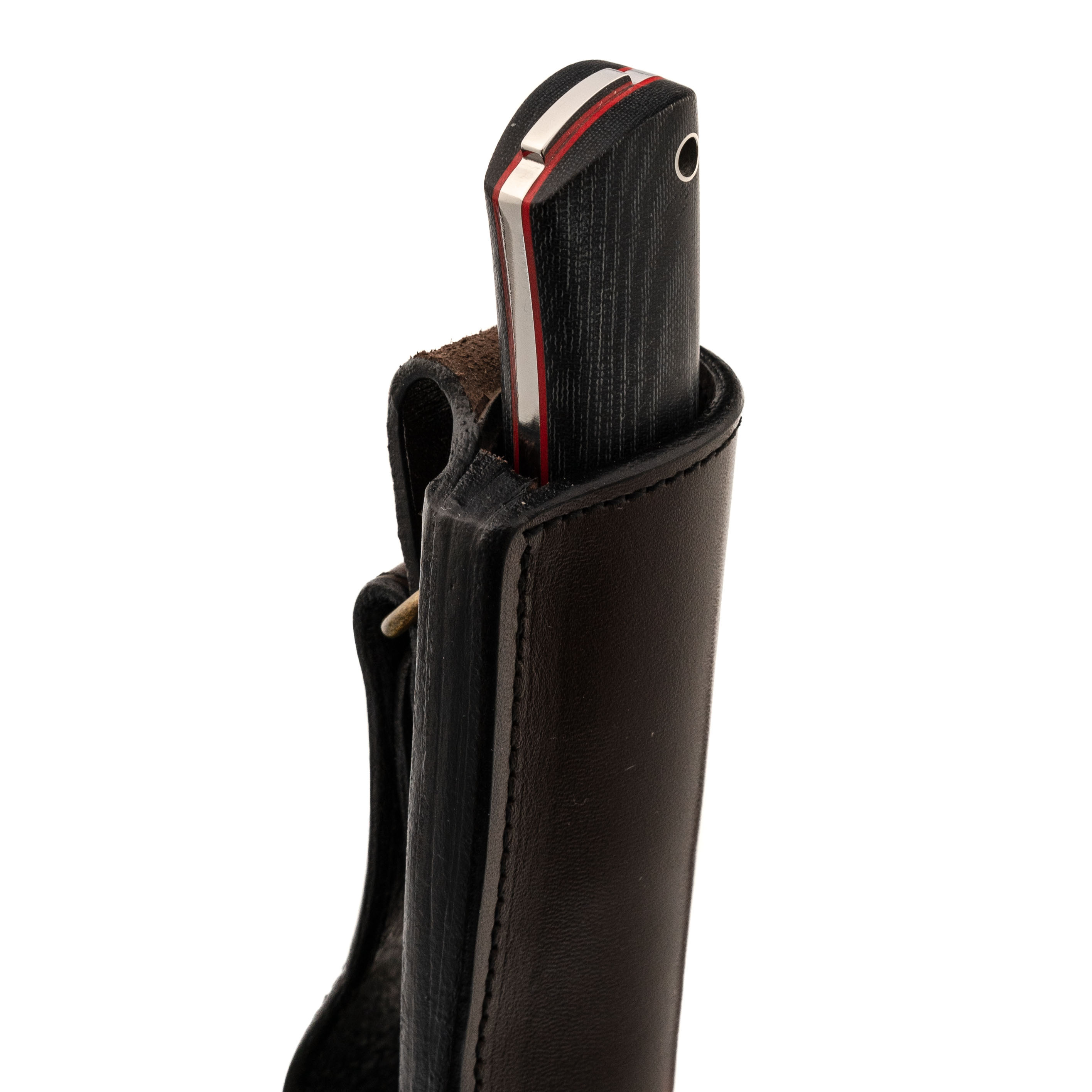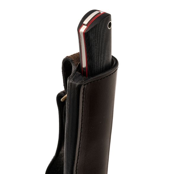 Ножны, изготовленные из толстой натуральной кожи растительного дубления, отличаются исключительной прочностью и долговечностью. Индивидуальный подход к формированию ножен обеспечивает идеальную посадку ножа. Свободный подвес ножен обеспечивает удобство при ношении и не ограничивает движения, что особенно ценят опытные путешественники.