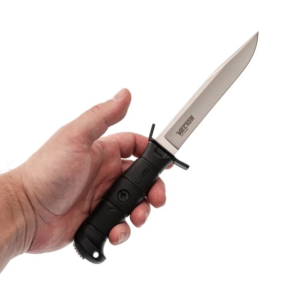 Главная особенность клинка Vector - его толщина, которая составляет внушительные 5,7 мм, что обеспечивает исключительную прочность и выносливость. Несмотря на такую толщину, спуски клинка высокие, что позволяет эффективно выполнять резательные работы. Сталь AUS-8, из которой изготовлен клинок, является отличным выбором для тактических ножей. Она обладает высокой ударной вязкостью, устойчивостью к коррозии и относительно простой заточкой даже в полевых условиях, что делает ее универсальной и надежной.