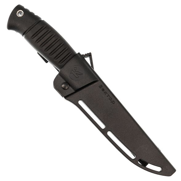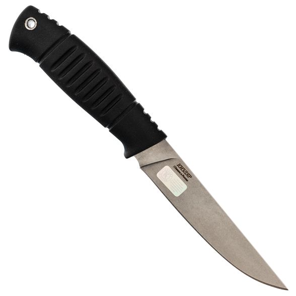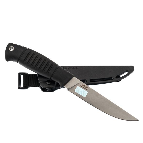 Рукоять из эластрона обеспечивает уверенный и цепкий хват, что делает нож удобным даже в условиях высокой влажности. Нож оснащен практичными ножнами с надежным подвесом, что позволяет легко носить его на ремне или в рюкзаке. Универсальный дизайн делает модель "Вектор" популярной как среди профессионалов, так и среди любителей.