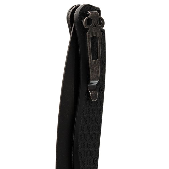 Daggerr Vendetta - это впечатляющий складной нож, который сразу привлекает внимание своим дерзким внешним видом. Его черный цвет от рукояти до клинка создает таинственный и брутальный образ. Рукоять, выполненная из прочного и легкого термопластика FRN, имеет уникальную текстуру в виде черепков, обеспечивая надежный хват даже в экстремальных условиях. Клинок выполнен из стали 8Cr14MoV с покрытием Black Stonewash, обладает невероятной коррозионной стойкостью и остротой, преуспевая в различных задач. Этот нож - воплощение стиля и силы, идеально подойдет тем, кто ценит уникальный дизайн и непревзойденное качество.