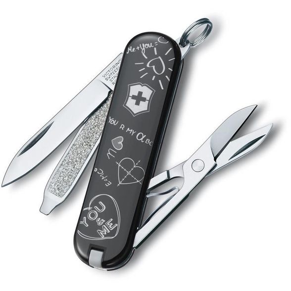 Лимитированная серия Victorinox Classic Back 2 School - это не просто нож, а настоящий символ школьных воспоминаний. Дизайн накладок украшен яркими и узнаваемыми рисунками: сердечки, формулы, графики и элементы, словно срисованные с классной доски. Такой нож - отличный подарок коллекционеру или ценителю оригинальных аксессуаров. Благодаря компактному размеру (58 мм) он легко помещается в любой карман, не теряя при этом своей практичности.