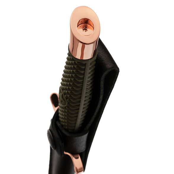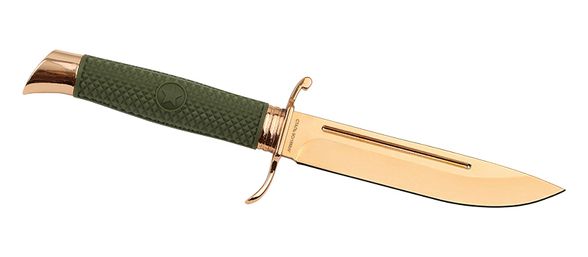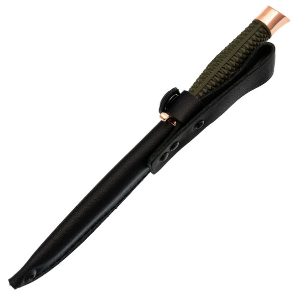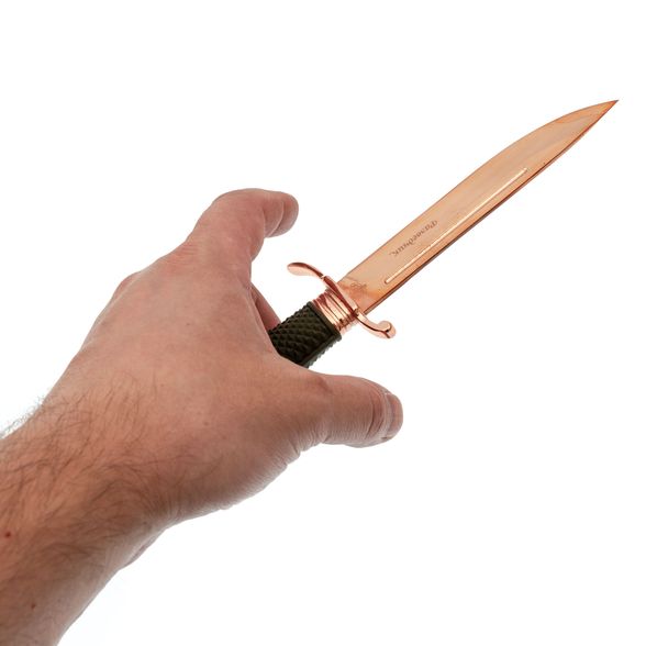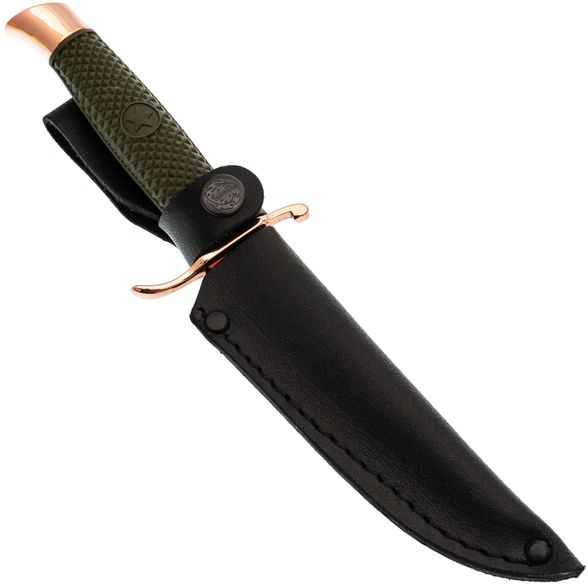 Металлические элементы (в том числе клинок) покрыты глянцевым покрытием медного цвета, что придаёт ножу стильный вид и защиту от воздействия внешней среды.