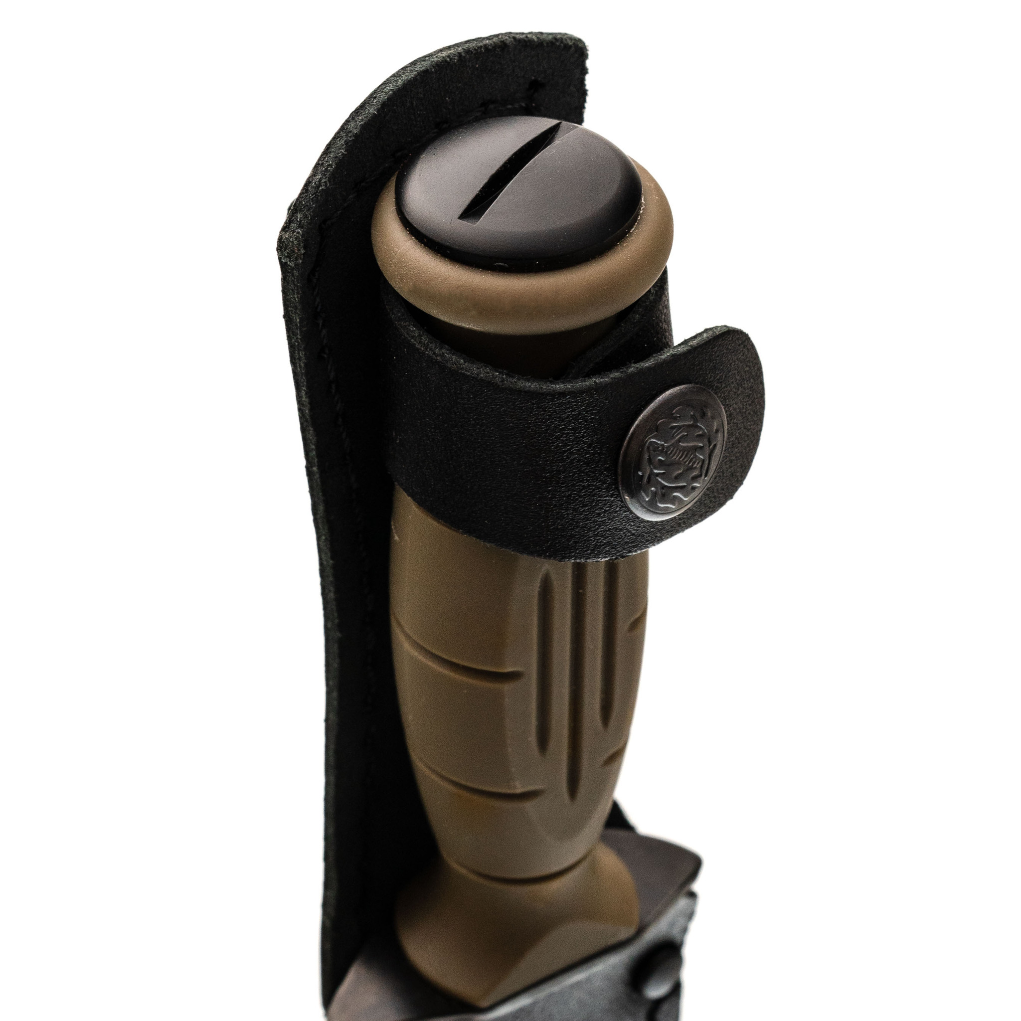 Ножны из натуральной кожи надежно защищают нож и позволяют удобно носить его на поясе. Жесткий подвес и хлястик надежно удерживают инструмент на месте, обеспечивая безопасность и удобство ношения.