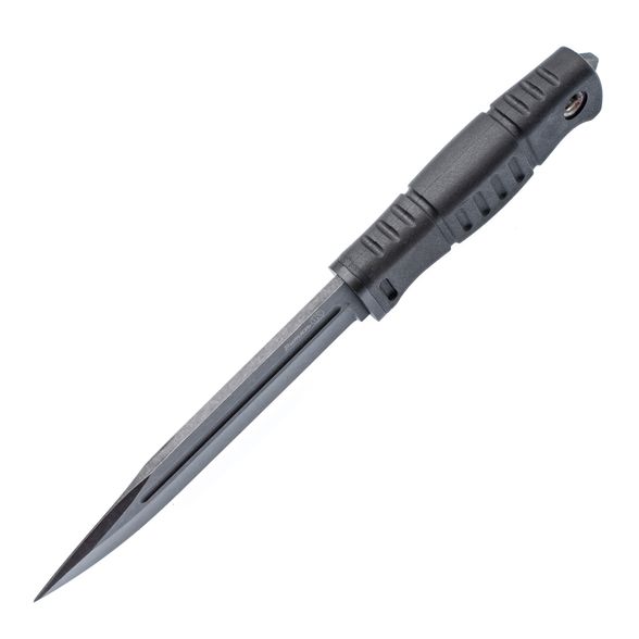 Рукоять ножа арт. 03206 выполнена из эластрона цвета хаки, это вид резинового пластика, и имеет сегментированную конструкцию, что обеспечивает надежное и комфортное удержание даже в сложных условиях. Благодаря продуманной эргономике и отсутствию стальной гарды, рукоять обеспечивает отличное сцепление с рукой, позволяя уверенно выполнять различные задачи. Нож "Витязь" имеет цельнометаллическую конструкцию, что придает ему дополнительную прочность и надежность.
