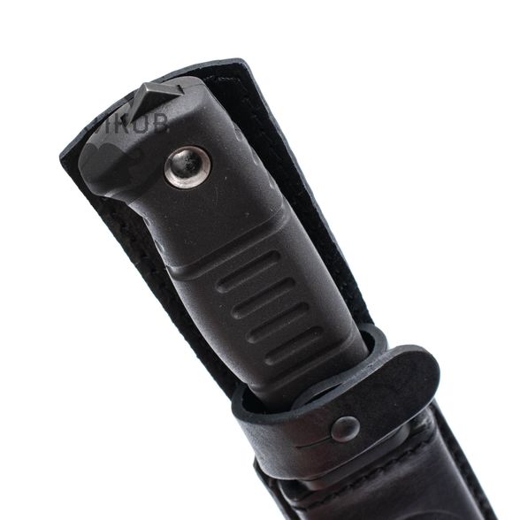 Клинок ножа "Витязь" изготовлен из высококачественной стали AUS-8, что обеспечивает его прочность и устойчивость к износу. Твердость этого ножевого сплава составляет 56058 HRC. Форма лезвия практически симметричная с массивным кончиком, что позволяет эффективно рубить и пробивать, что особенно важно в экстремальных ситуациях. Тыльная часть клинка оснащена острым металлическим выступом, который может сложить в качестве стеклобоя или для других вспомогательных задач. Длина лезвия составляет 163 мм, полные габариты – 290 мм. Сбоку есть авторская подпись, говорящая о производителе. Носить в город такой аксессуар не рекомендуется. Он относится к холодному оружию.