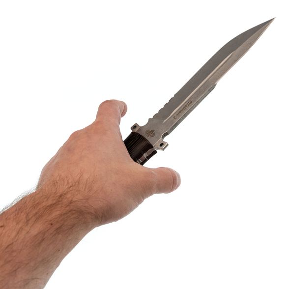 Рукоять из венге - плотная, текстурная, с приятной «тёплой» отдачей; цепко лежит в руке и в перчатке.