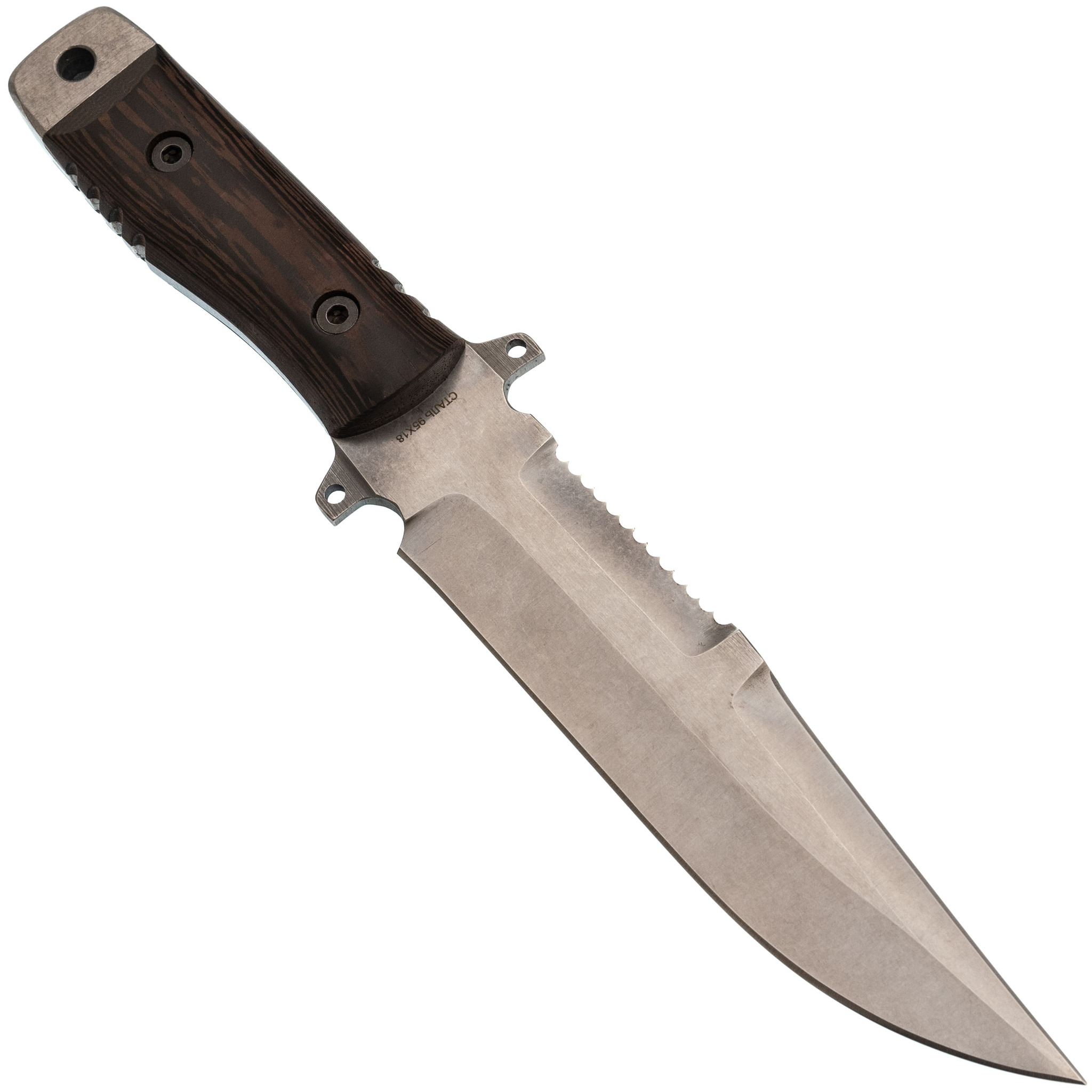 Сталь 95Х18 - нержавеющая и износостойкая; спокойно переносит влагу, грязь и перепады температур, долго держит рабочую кромку и легко правится в полевых условиях.