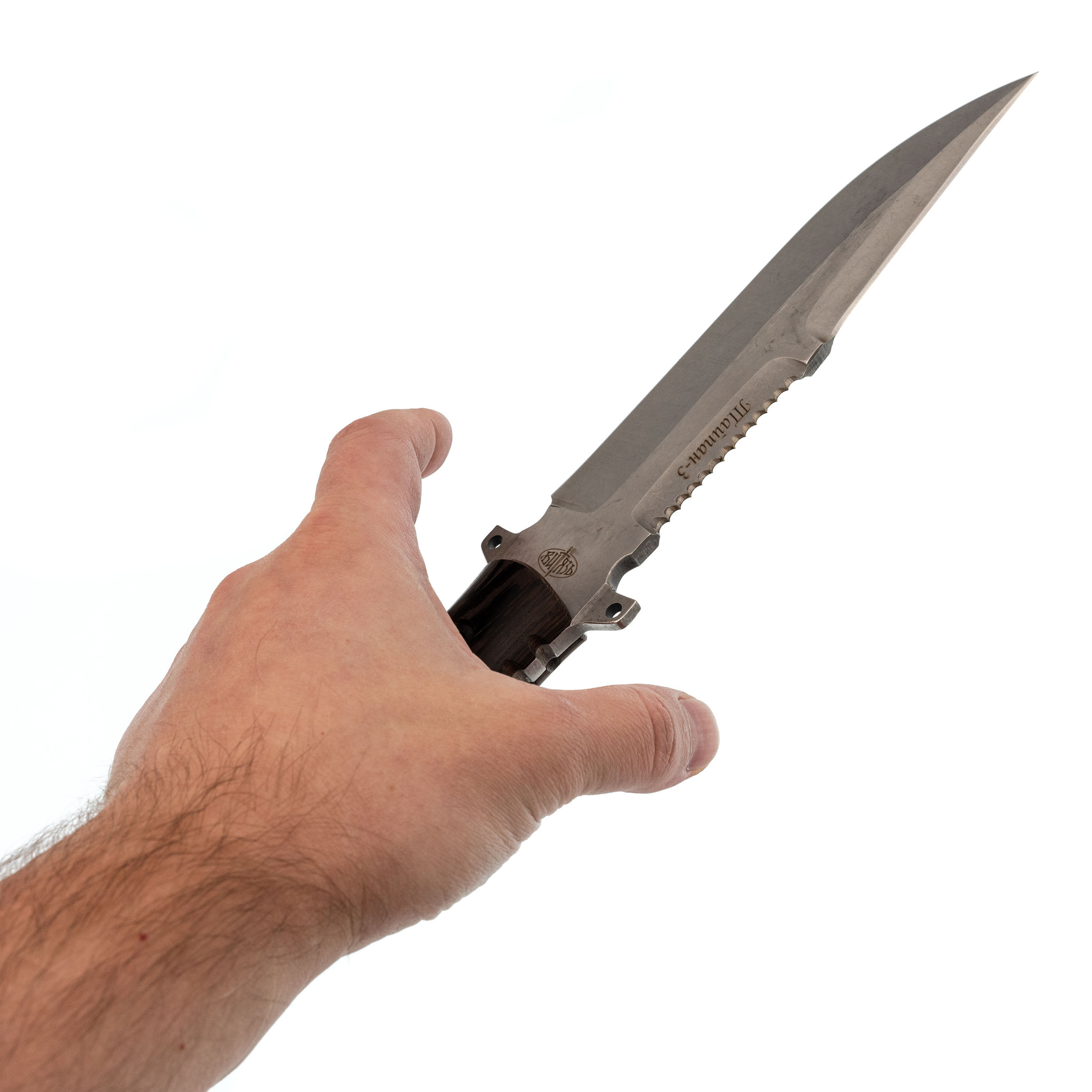 Рукоять из венге - плотная экзотическая древесина с естественной цепкостью; не холодит руку, комфортна в перчатках и без.