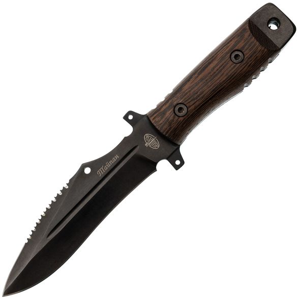 Нож Тайпан от Витязь - это идеальный инструмент для выживания в самых сложных условиях. Благодаря прочной стали У8 с воронённым покрытием, этот нож стойко выдерживает любые нагрузки и готов к работе в различных условиях. Его толстый и надёжный клинок с серрейторной заточкой идеально подходит для рубки и строгания. Тайпан - это универсальный нож для походов, туризма и любых активных действий на природе.
