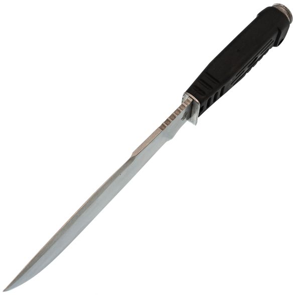 Клинок из AUS-8 - нержавеющая сталь японского происхождения. Отличается хорошим балансом прочности, твёрдости и стойкости к коррозии. При правильной заточке долго держит кромку и не подведёт даже при серьёзной нагрузке.