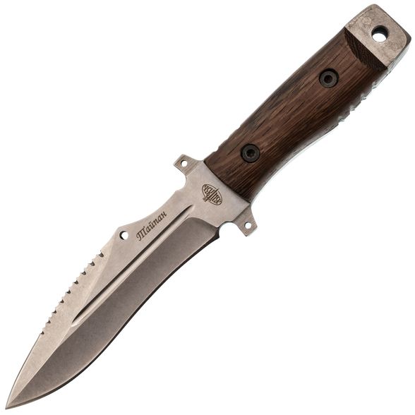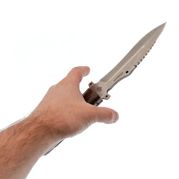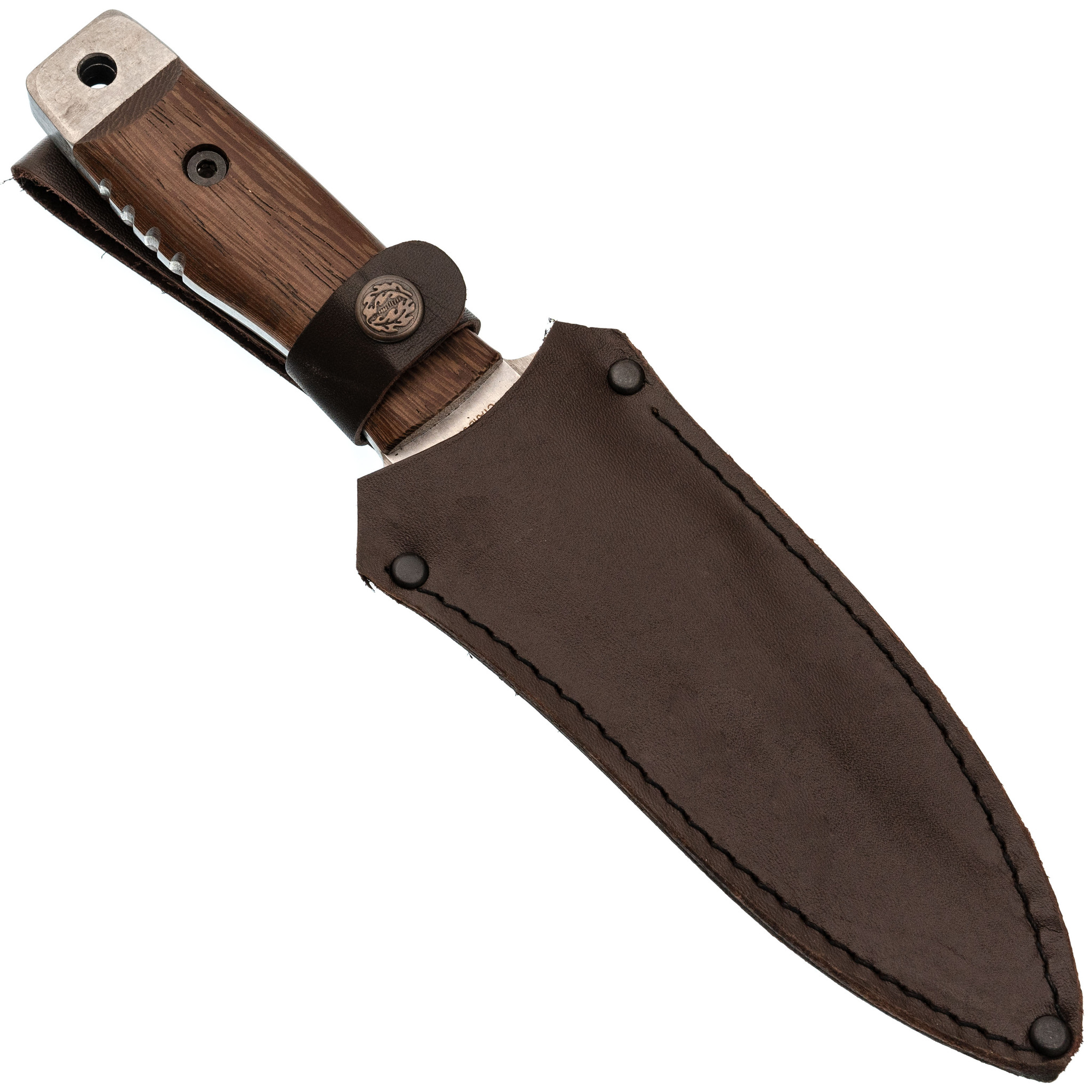 Нож Тайпан - это настоящий рабочий инструмент, который создан для выполнения самых различных задач в условиях выживания, походов и активного отдыха. Цельнометаллический монтаж и кожаные ножны с жестким подвесом обеспечивают долговечность и удобство ношения. Тайпан - это нож для тех, кто ценит надёжность, практичность и долговечность.