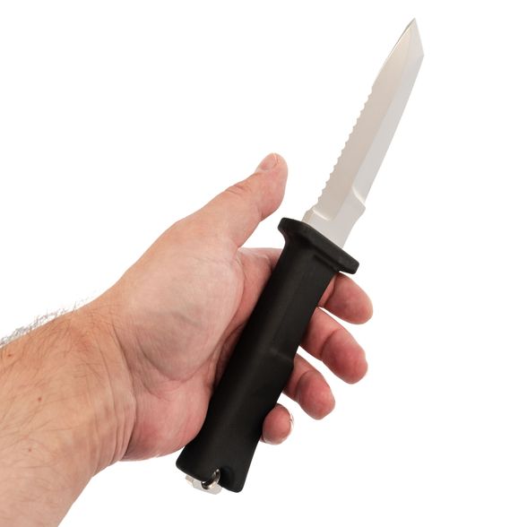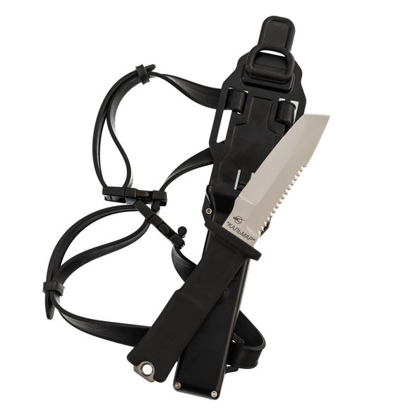 Нож водолазный Кальмар, сталь 95х18, рукоять термоэластопласт, пластиковые ножны