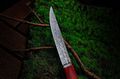 Сталь N690. Нержавеющий сплав с высоким содержанием кобальта и хрома, хорошо держит остроту, устойчив к влаге и продуктам, спокойно переносит чередование походных и кухонных задач, при этом поддаётся заточке обычными камнями.